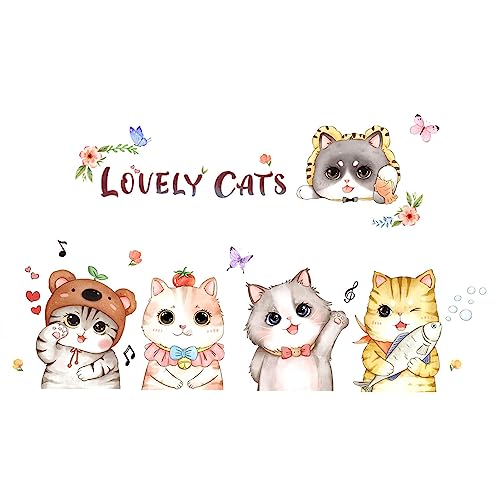 Imtrub Adesivi da parete con gattini, autoadesivi inglesi adorabili gatti gattini murali - Decorazione rimovibile per camera da letto delle ragazze, camera da letto dei bambini, soggiorno, cameretta