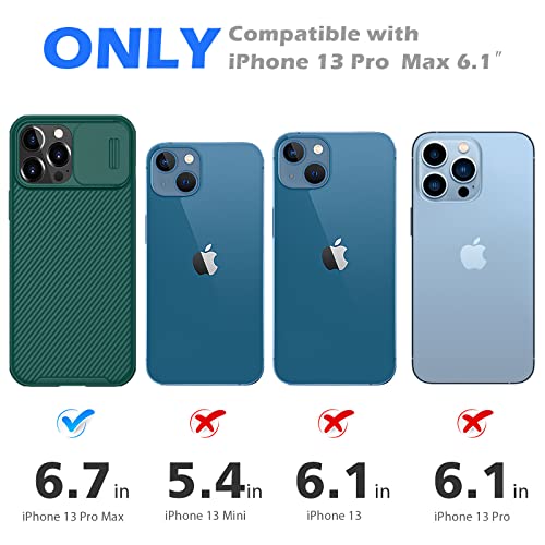 Imuckies Custodia compatibile con iPhone 13 Pro Max 6,7", con custodia per fotocamera scorrevole, in PC rigido e morbido paraurti, protezione completa per fotocamera, antigraffio, Verde
