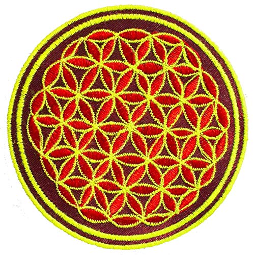 ImZauberwald Toppa con fiore della vita (~ 9 cm - Sacra Geometria - UV attivo) con molte diverse varianti di colore Rosso giallo s