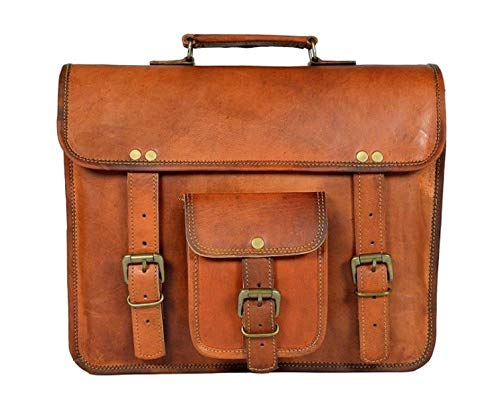 In-india pelle vintage borsa a tracolla messenger Satchel Courier Gift Men Women ~ Business lavoro ventiquattrore Carry computer laptop Book (marrone) marrone Brown 11''