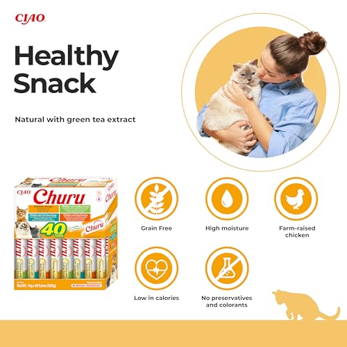 INABA Churu puree Multipack - Delicati per gatti da mangiare. Totale 40 tubi: 10 polli, 10 galli con capesante, 10 mazzi con granchi e 10 galli con carne di manzo