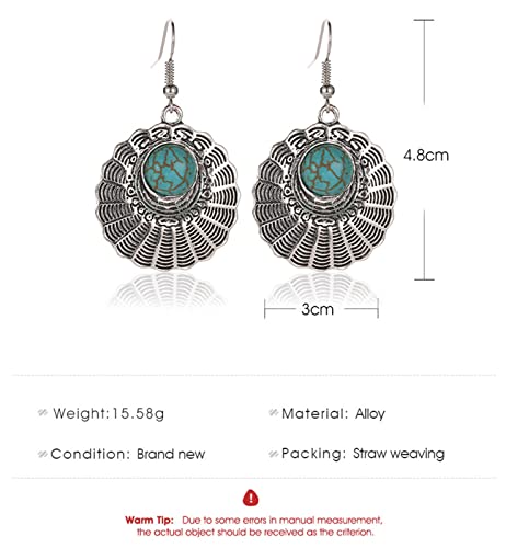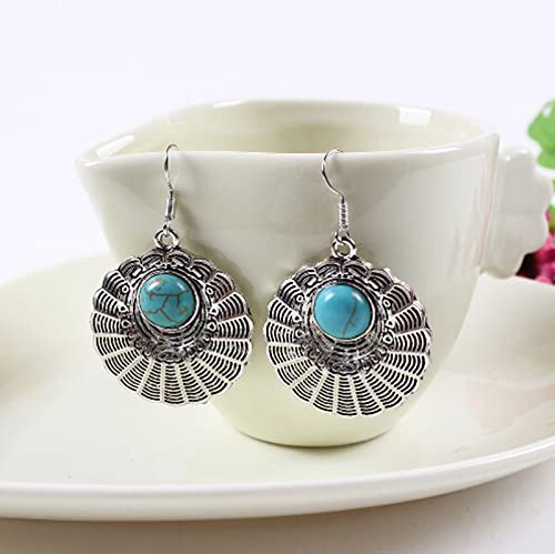 Inateannal Orecchini D'epoca Turchese Dangle Etnico A Forma Di Ventaglio Goccia Orecchini Dichiarazione Gancio Orecchini Per Le Donne Ragazze