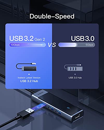 Inateck 10Gbps USB C Hub, Adattatore USB 3.2 Gen 2 Type-C con 1 porta PD da 100W, 3 porte USB 3.2 Gen 2 Type-A e 1 porta HDMI 4K 30HZ, HB2021.