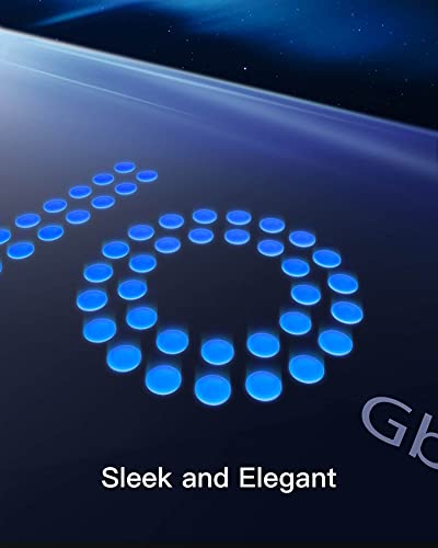 Design elegante: Con un rivestimento in alluminio e superficie in vetro temperato, l'hub presenta un look classico ed elegante. Il simbolo 10G sul vetro temperato si illumina quando l'hub viene collegato all'alimentazione, donando una sensazione futuristica.