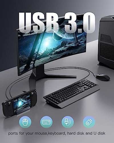 Alta Compatibilità: la velocità di trasferimento dell'interfaccia USB3.0 è di 5 Gbps e consente di collegare periferiche come mouse, tastiera, chiavetta USB e disco rigido. Compatibile con Mac OS, Windows, Linux, ecc. e funziona con Steam Deck, Valve Steam Deck, Asus ROG Ally, la maggior parte dei laptop/smartphone e altri dispositivi.