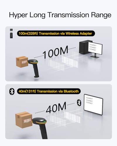 Compatibilità superba:Questo scanner è dotato di tre modalità di connessione, wireless 2.4G, Bluetooth e cablata ed è compatibile con Windows, Mac OS, iOS, Android, iPad OS e Linux, soddisfacendo le tue esigenze di scansione di codici a barre in diversi scenari.