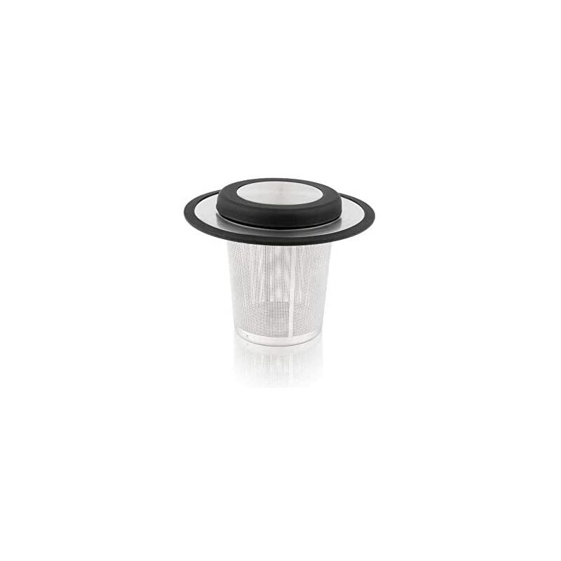 Filtro universale per tè a maglia fine in acciaio inossidabile da inserire nel bicchiere o nella teiera. Il coperchio funge anche da supporto per il filtro del tè. Il filtro del tè può essere lavato in lavastoviglie.