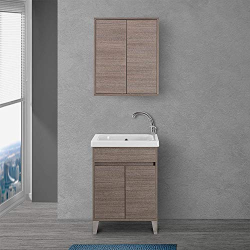 Inbagno Mobile lavatoio per Lavanderia con Vasca in Ceramica, L.61xP.51xH.87,5 cm, Linea Way in Diverse colorazioni, Vasca con strofinatoio Integrato (Rovere Scuro)