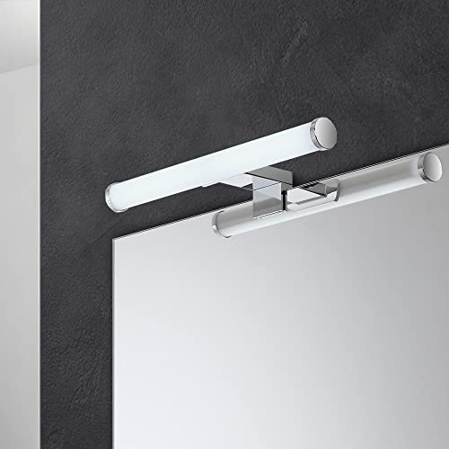LAMPADA LED: La luce da specchio ha LED integrati. La luce è montabile direttamente sopra uno specchio a filo lucido tramite il morsetto presente nella struttura della lampada. Linea guida per l'installazione presente nelle immagini prodotto. Il trasformatore è integrato nella struttura della lampada. NON include interruttore per l'accensione della lampada;
