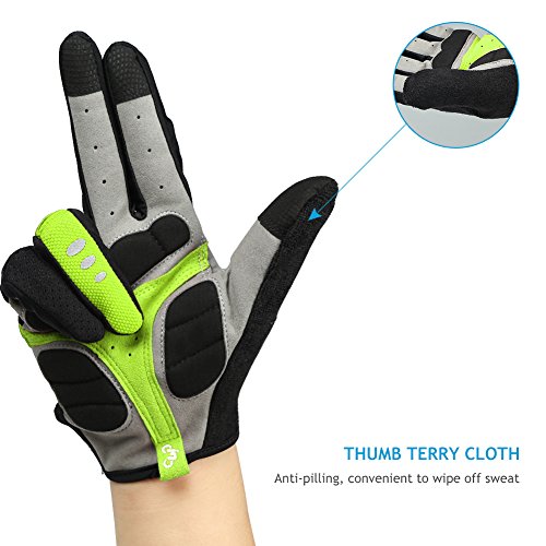INBIKE Guanti MTB, Guanti da Ciclismo con 5MM Eva Pieno Dito Estivi per Bici Bicicletta Uomo(Verde-Long,XL)