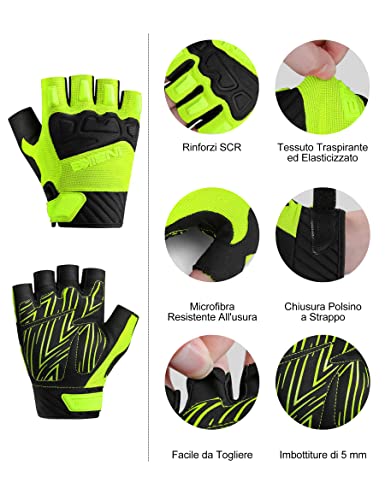 INBIKE Guanti MTB Estivi da Uomo Guanti Ciclismo Senza Dita in 5mm Imbottitura Traspirante Antiscivolo con Ottima Presa(Verde,L)