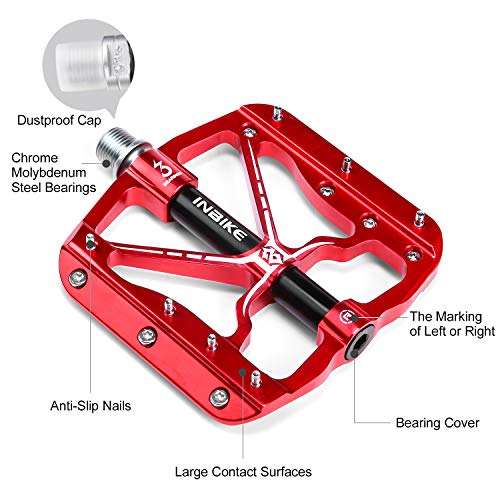 INBIKE Pedali per Ciclismo Petali MTB Flat CNC Lega di Alluminio Ultra Assale Cuscinetto Sigillato Antiscivolo Pedali (Rosso)