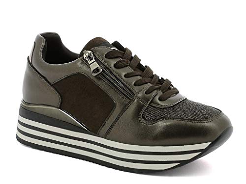 Inblu IENNE Sneakers Scarpa Donna Stringata con Cerniera Laterale Sottopiede in Tessuto Imbottito Estraibile Zeppa 4 CM Articolo IN-234 Bronzo (39)