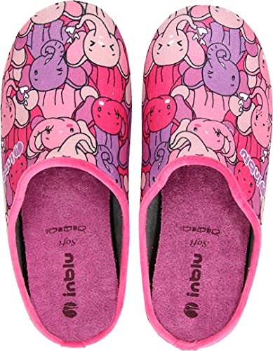 INBLU Pantofola Donna Fuxia in Panno Stampa Colorata (37, FUXIA, numeric_37)
