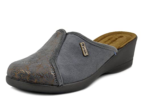 Inblu, Pantofole Donna Invernali in Caldo Tessuto Grigio, Sottopiede Soft Vera Pelle, Zeppa Media, DE09