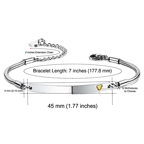 12 PIETRE DEL CUORE - Il braccialetto a catena di serpente viene fornito con una pietra portafortuna a forma di cuore che si trova sull'etichetta dell'incisione, 12 pietre portafortuna per conto di 12 mesi rispettivamente, puoi scegliere 1 pietra portafortuna per rappresentare il tuo compleanno, progettare il braccialetto delicato del cuore di te stesso.