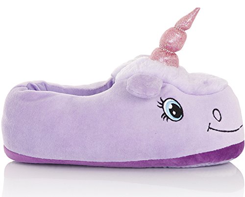 Incantevole Donna, Ragazze, Bambini/Per Bambini Originale Plush Velour 3D Unicorn Pantofola con Occhi, Orecchie, Naso e Corno, Rosa - Lilla, 38-39 EU