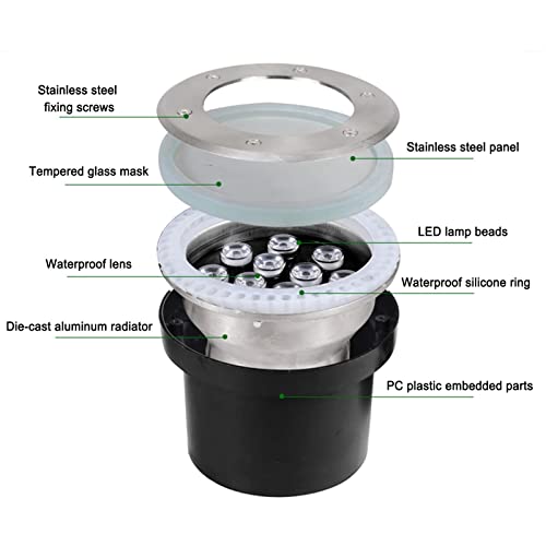 【RUGGED STURDY PATHWAY LIGHTS】 La lente convessa è chiara, rendendo queste luci del paesaggio sotterraneo più luminose del normale. Pannello in acciaio inossidabile di alta qualità, vetro soda-lime temperato ad alta temperatura, involucro in alluminio di alta qualità, resistenza agli urti, nessuna fessurazione, nessuna ruggine, migliore dissipazione del calore.