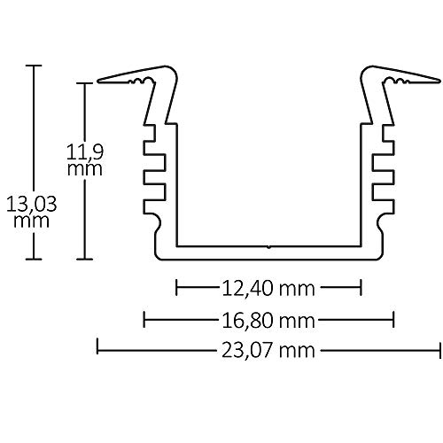 Questo profilo LED da incasso ha un design particolarmente sottile, è progettato per LED flexbaender con una larghezza massima di 12 mm e viene utilizzato universale in uso al chiuso. Questi profili LED da incasso, a causa delle piccole dimensioni e del peso ridotto in pareti e soffitti con gesso, pietra o betonplatten nonché holzverkleidungen antifuro viene utilizzato (opzionale con il tunnel kabelschleuse - Art. N. 112844). Possono anche essere installato in presenti mobili.