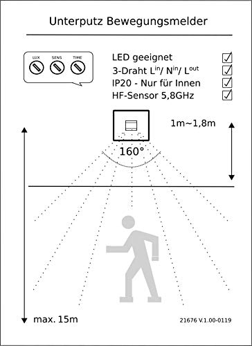 Incasso HF Rilevatore di movimento 160 LED adatto 3 filo di ingegneria Bianco