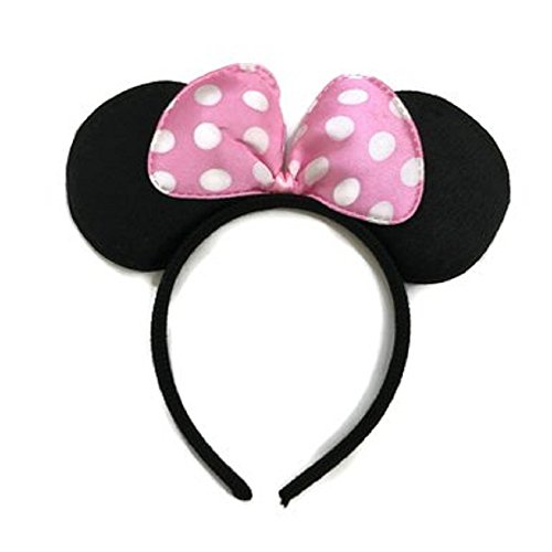 Inception Pro Infinite Cerchietto con Orecchie - Fiocchetto Rosa - A Pois Bianchi - Accessori - Abito Minnie - Topolina - Donna - Bambina