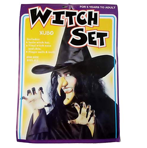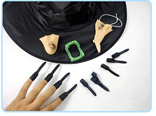 Inception Pro infinite Set Strega - Cappello + Naso + Mento + Unghie + Denti finti - Travestimento - Halloween - Carnevale - Uomo - Donna - Unisex