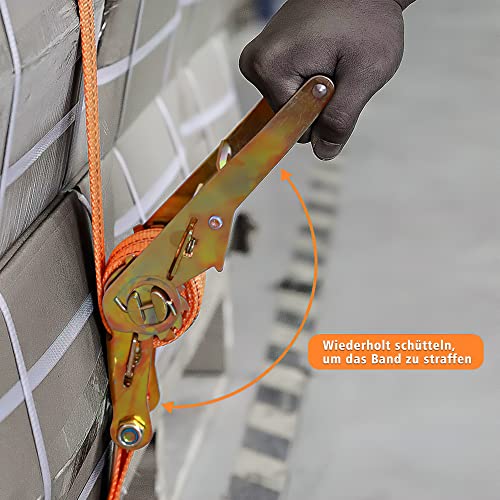 Cinghia a cricchetto multiuso: la cinghia di tensione con super resistenza è spesso utilizzata per il trasporto di merci pesanti, sia che si tratti di hobby camper o furgoni. Cinghia di fissaggio per quasi ogni utilizzo di rimorchi o rimorchi per moto e camion.
