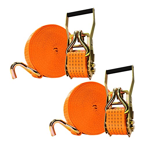 INCETUE 2 cinghie di tensione da 6 m con cricchetto, cinghie a cricchetto extra lunghe con ganci, 38 mm di larghezza, estensori, fasce di tensione per bagagli, auto, sicurezza del carico - arancione