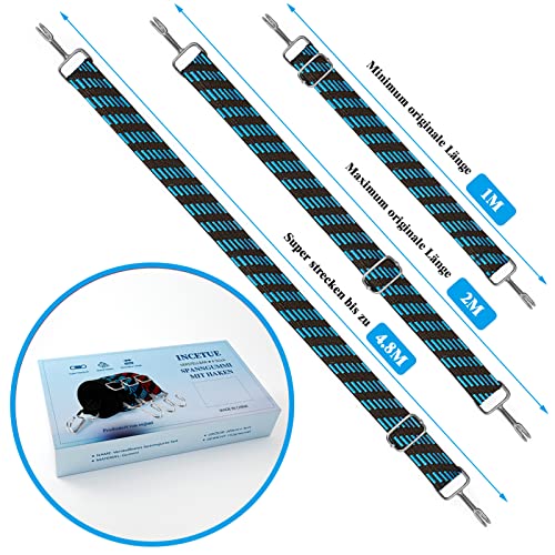 INCETUE Set di 4 cinghie di tensione regolabili con gancio 2 m, universali per bagagli, elastici in gomma extra forti per biciclette, trasporto auto, moto, gomme rosse, 200 x 3 cm