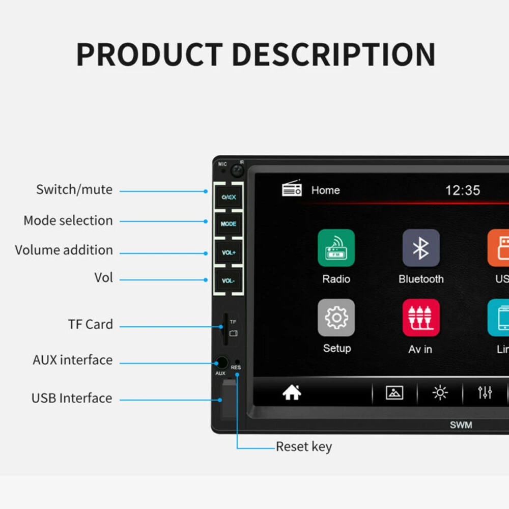 7 Inch N7 Android Car 2 DIN Multimedia MP5 Player 12V Radio GPS Bluetooth Audio Stereo Auto Intelligent System Mirror Link