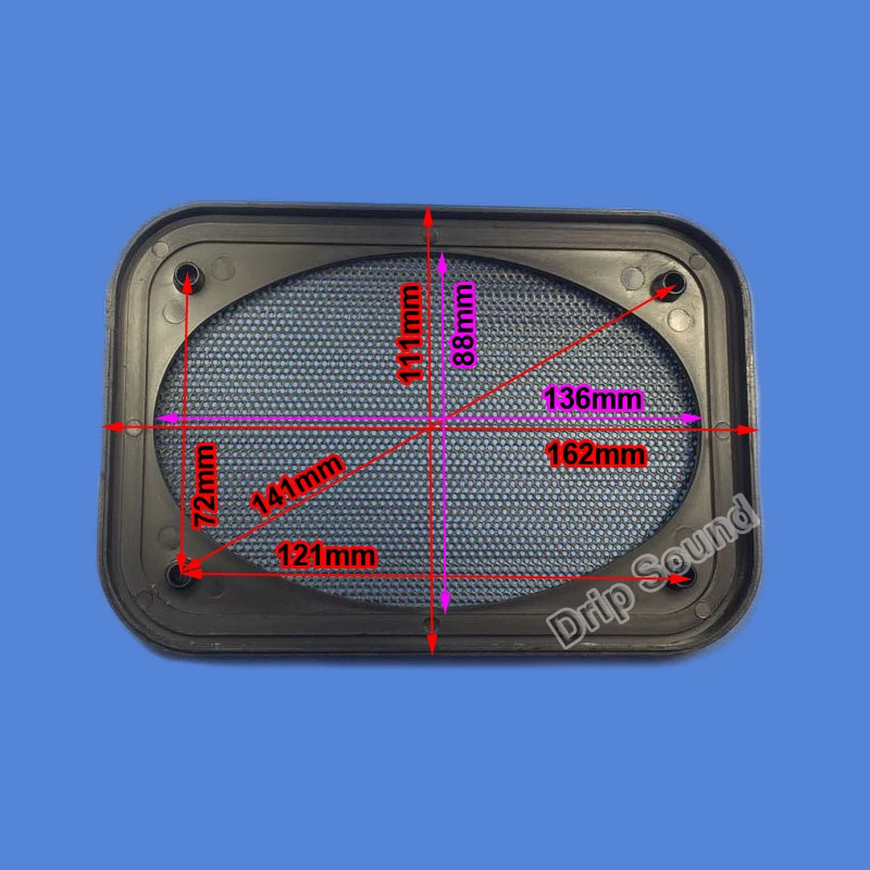 For 4"x6" inch Car Audio Speaker Conversion Net Cover Decorative Circle Metal Mesh Grille Protection #Black+Black