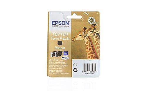 Inchiostro originale compatibile con Epson Stylus DX 8450, T0711H C13T071140H10, 2 X Premium cartuccia stampante nero, 11,1 ML
