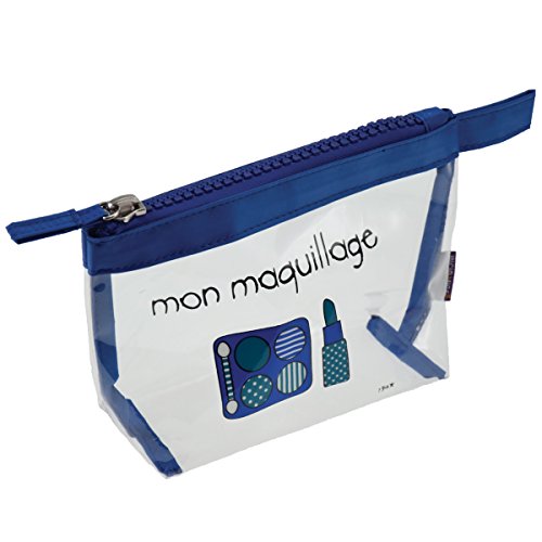 Incidence Paris 61832 - Astuccio per trucco Krystal Mon Makeup trasparente e blu in PVC e nylon, chiusura a zip, 19 cm, trasparente