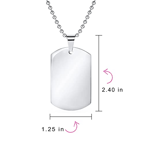 Incisione personalizzata Media Semplice Semplice Base Cool Men's Identification Military Army Dog Tag Pendant Collana per uomini Argento lucido Tono acciaio inossidabile 24 pollici Catena a sfera