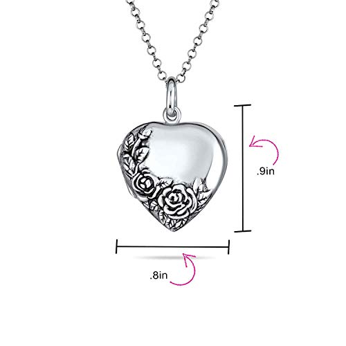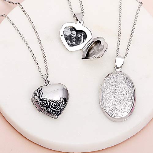 Incisione personalizzata Vintage Style intagliato fiore floreale rosa foto cuore forma medaglioni collana ciondolo per le donne che tengono le immagini ossidato .925 argento sterling personalizzabile