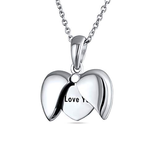 Inciso Dire I Love You Apertura Ala D'Angelo Cuore Forma Ciondolo Collana Per Le Donne Fidanzata .925 Sterling Silver