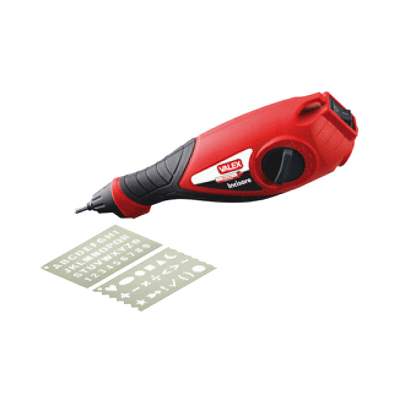 Incisore elettrico valex punta in acciaio al tungsteno sostituibile . potenza di incisione regolabile. con 2 maschere per incisione di numeri lettere e figure potenza 13 watt