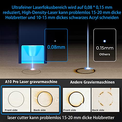 A10 Pro 50w Incisore Laser - Macchina per incisione laser, 10W Uscita Dispositivo di incisione offline, Legno taglierina cutter laser per vetro, ceramica, ardesia, 410 * 400 mm