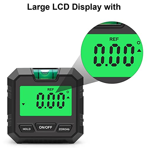 Inclinometro Digitale Magnetico Elevata Precisione Angle Finder Display Retroilluminato Bevel Box con Una Funzione di Cancellazione dei Tasti per Lavorazione del Legno, Costruzione (nero)