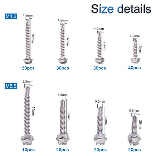 INCREWAY M4.2 M5.5 410 Acciaio Inox Hex Rondella Testa Autoperforante Lamiera Tek Kit Assortimento Viti 200pcs