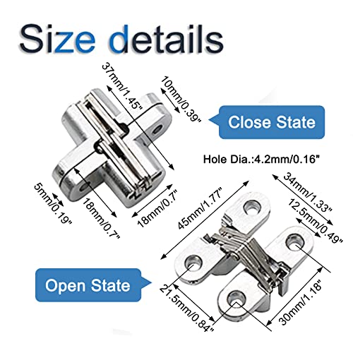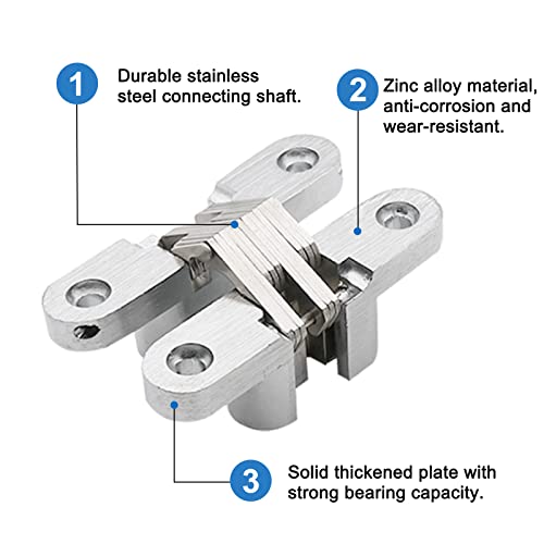 INCREWAY 4 cerniere nascoste, cerniera a croce invisibile in lega di zinco nascosta robusta cerniera per porta in legno