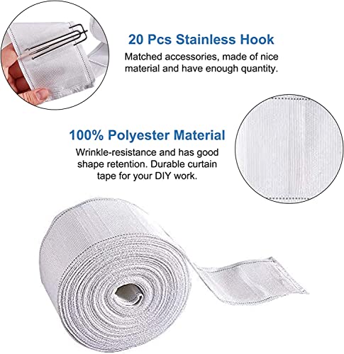 Materiale: Il nastro per tende è realizzato in 100% poliestere, i ganci sono realizzati in acciaio inossidabile di alta qualità. Può durare per diversi anni.
