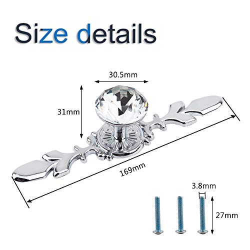 Include viti di rottura: le dimensioni dei pomelli in cristallo sono 169 mm x 25,8 mm, il diametro del vetro diamantato è di 30,5 mm, vengono forniti con viti di rottura per ogni manopola, la dimensione della vite è di 27 mm.