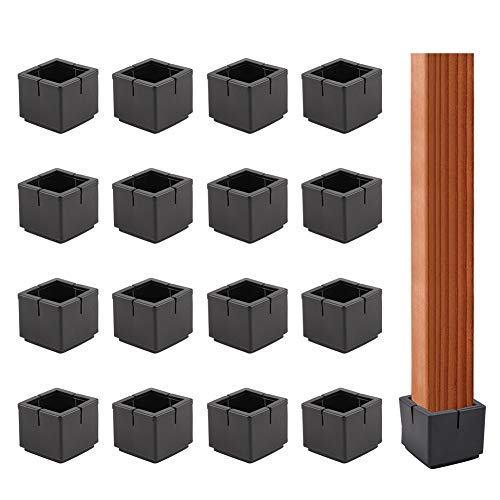 INCREWAY Protezione per pavimento, 16 pezzi antiscivolo in gomma per gambe di sedie quadrate con feltro, coprigambe per mobili da tavolo con diametro da 31 mm a 36 mm, colore nero
