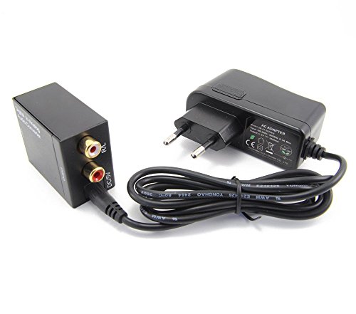 Incutex - Convertitore Audio da Digitale (Toslink e coassiale) ad analogico (Cinch) - con Alimentatore SPDIF, RCA o Digitale Ottico TOSLINK