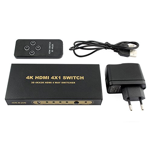 Incutex HDMI Switch 4K 4x1 Ultra HD 2160P Dolby True HD UHD 3D, Distributore 4x1 HDMI incl. Alimentatore e Telecomando