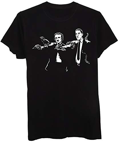 New Indastria T-Shirt Pulp Fiction Poe E Lovecraft Come Vince E Jules- Film Cult - Uomo-L-Nera