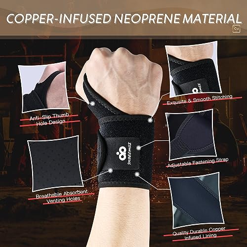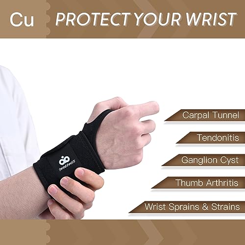 INDEEMAX Confezione da 2 tutori da polso in rame, Sollievo dal dolore, artrite, tendinite, bendaggi di compressione del polso regolabili con mani di stecca, adatti per uomini e donne