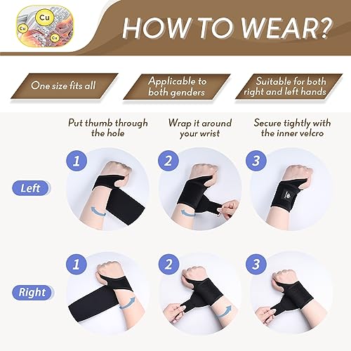 Materiale degli ioni di rame: 2 pezzi morbidi elastici traspiranti di taglia unica in rame sono realizzati in panno rivestito di ioni di rame resistente di alta qualità, assorbente, duraturo e pratico. Si adatta al design ergonomico, favorisce la circolazione, aiuta con tunnel carpale, distorsione del dolore al polso e protezione sportiva!