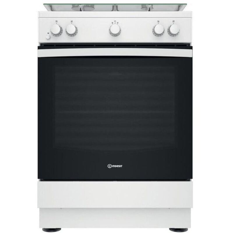 Fornello, Bianco, Piano cottura a gas, 60 cm, 4 zone cottura, Pulsanti, Forno a gas da 72 L, Pulizia manuale